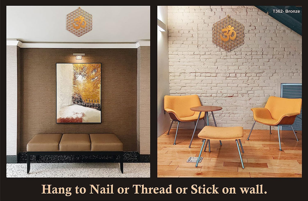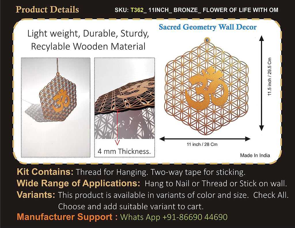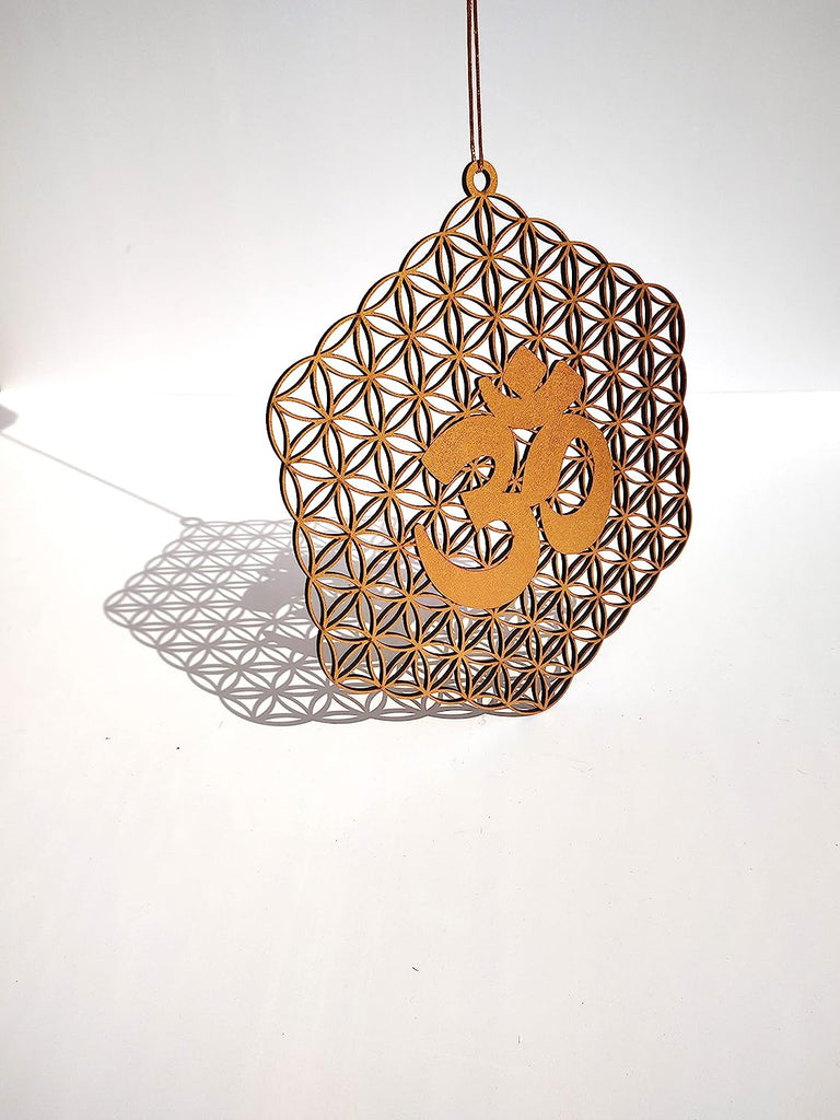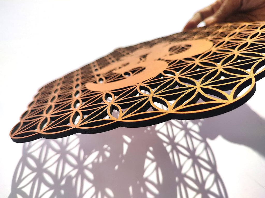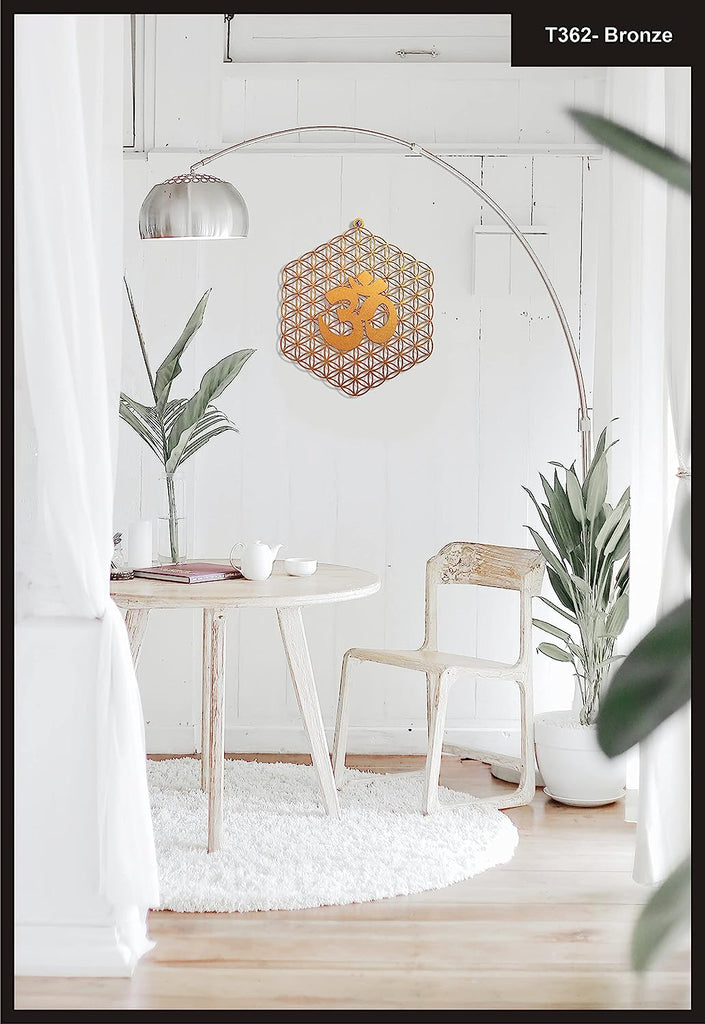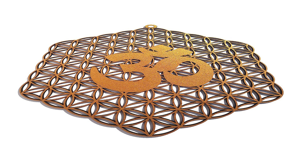 StepsToDo 'Flower of life with Om' (Metallic Bronze, 11.5 inch) | Wooden Sacred Geometry Art | Hand painted room hanging, wall decor | Spiritual Gift | Multiple design choices are available (T362)