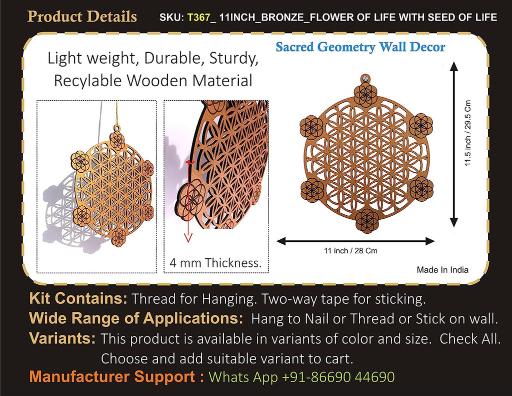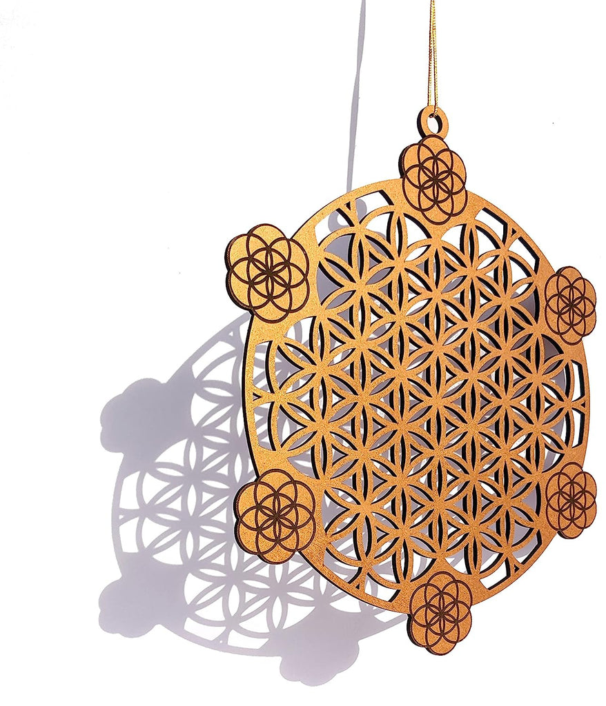 StepsToDo 'Flower of life with seed of life' (Metallic Bronze, 11.5 inch) | Wooden Sacred Geometry Art | Hand painted room hanging, wall decor | Spiritual Gift | Multiple design choices are available (T367)
