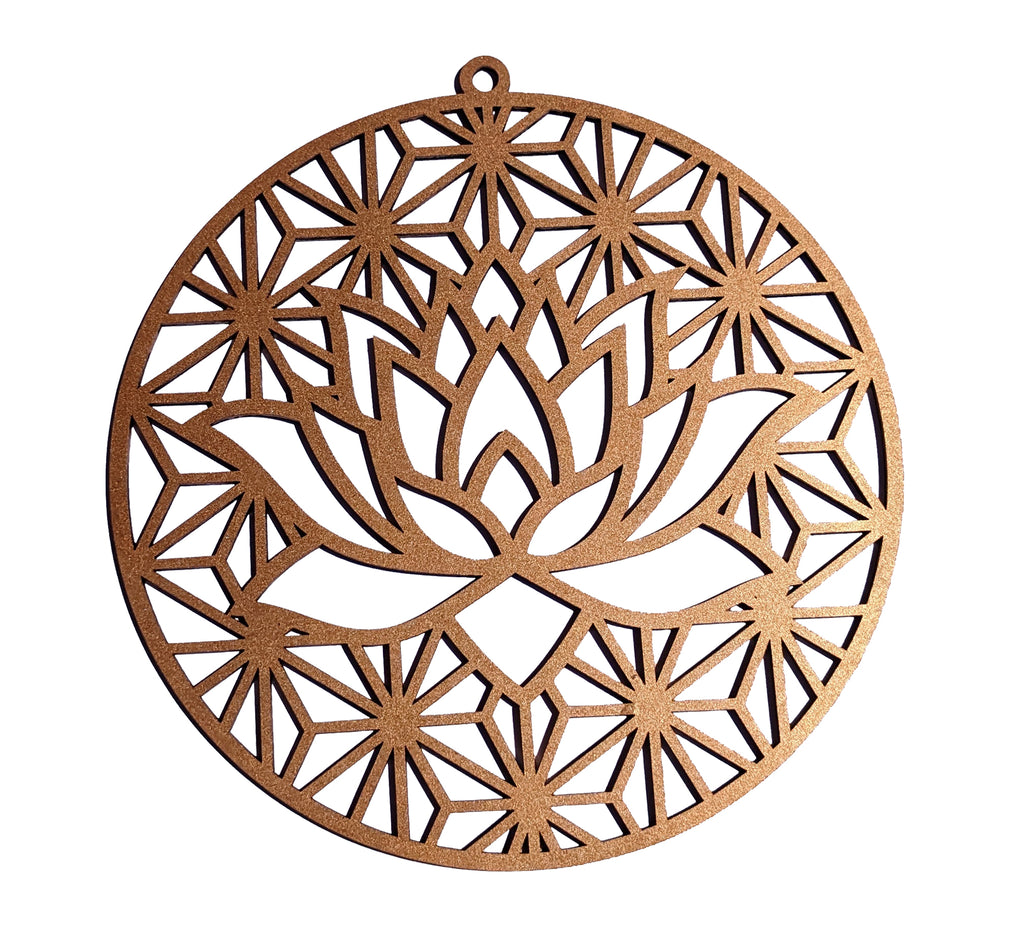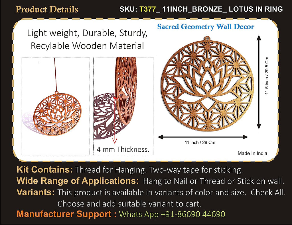 StepsToDo 'Lotus in Ring' (Metallic Bronze, 11.5 inch) | Wooden Sacred Geometry Art | Hand painted room hanging, wall decor | Spiritual Gift | Multiple design choices are available (T377)