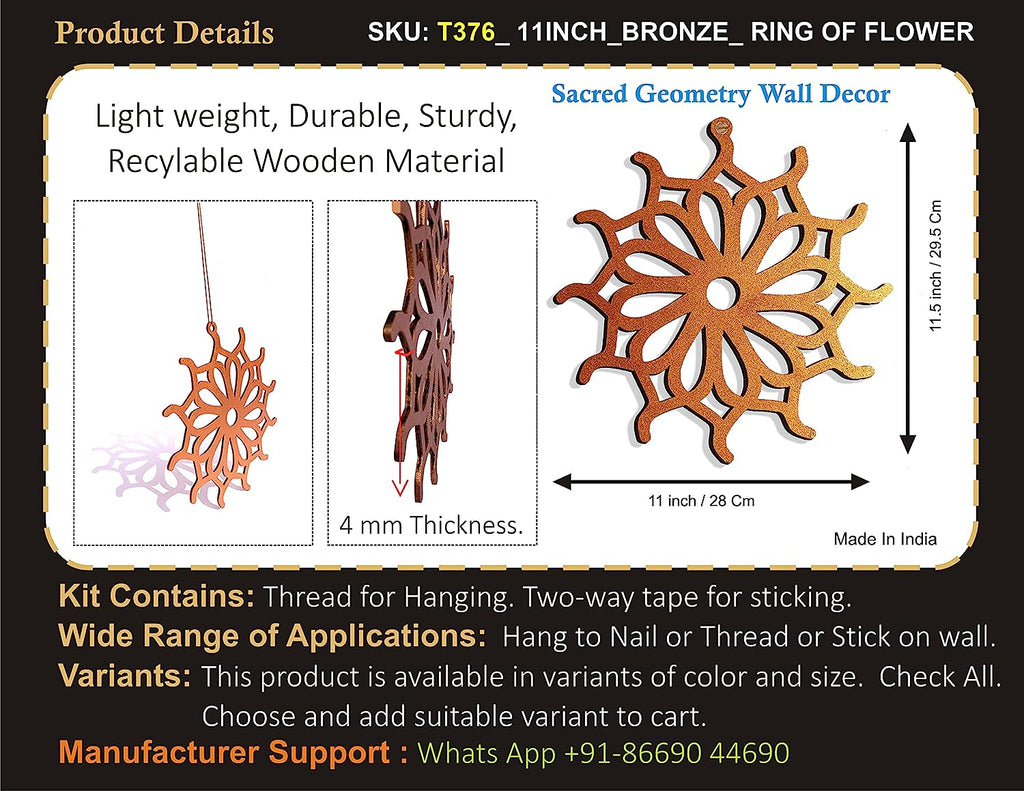 StepsToDo 'Ring of Flower' (Metallic Bronze, 11.5 inch) | Wooden Sacred Geometry Art | Hand painted room hanging, wall decor | Spiritual Gift | Multiple design choices are available (T376)