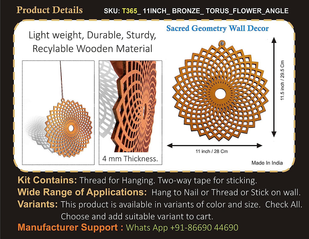 StepsToDo 'Torus Flower Angular' (Metallic Bronze, 11.5 inch) | Wooden Sacred Geometry Art | Hand painted room hanging, wall decor | Spiritual Gift | Multiple design choices are available (T365)