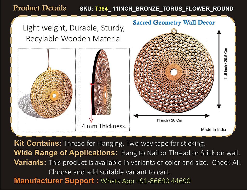 StepsToDo 'Torus Flower Round' (Metallic Bronze, 11.5 inch) | Wooden Sacred Geometry Art | Hand painted room hanging, wall decor | Spiritual Gift | Multiple design choices are available (T364)
