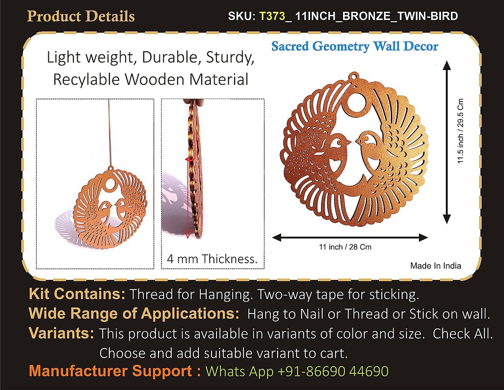 StepsToDo 'Twin Birds' (Metallic Bronze, 11.5 inch) | Wooden Sacred Geometry Art | Hand painted room hanging, wall decor | Spiritual Gift | Multiple design choices are available (T373)