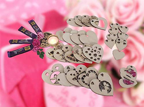 StepsToDo _ Premium Wooden Heart Ornament (Set of 29) | Love Gift Tag Cum Greeting Card | Cutout for Valentine Day, Anniversary & Wedding Decoration | Customize Color Write Message, Hang, Packing Label (T279)